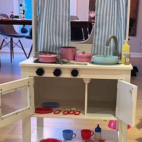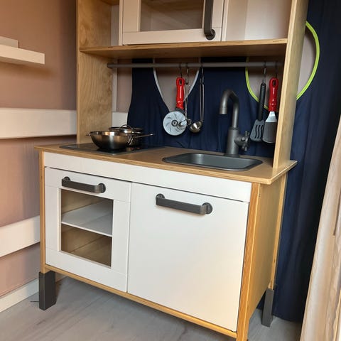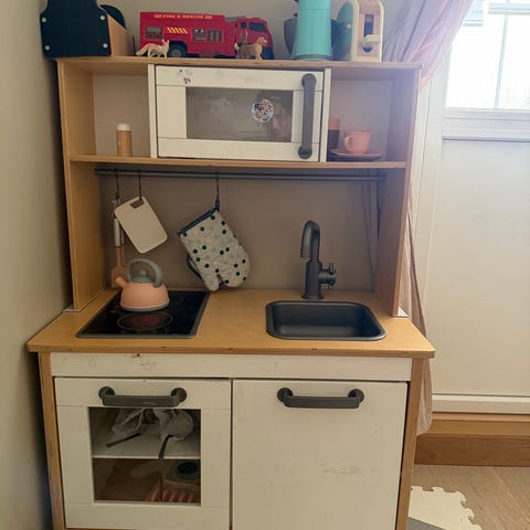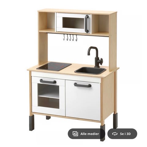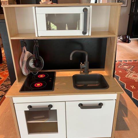 Her selges det et IKEA kjøkken for barn. Pent brukt, noen "leke"-riper finnes nok. Kan kombineres også med andre kjøkken møbler fra IKEA. Alt ble rengjort.