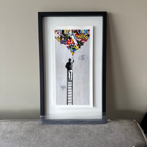 Rammet inn med kunstglass på galleri, ramme/glass 4500kr
