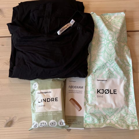 Fødekjole fra fødebaggen som kun er brukt i noen timer under fødselen.