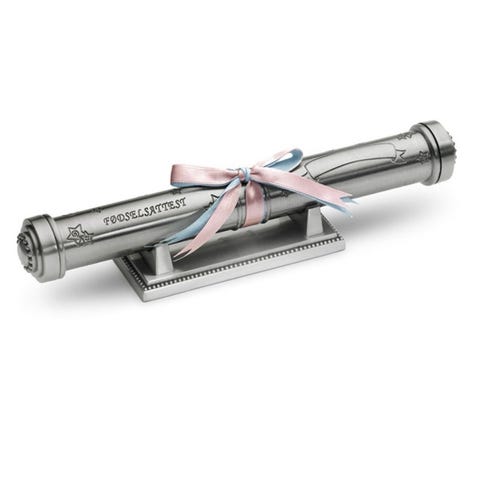 Sparebøsse i tinn formet som en gris. Om man er like heldig som en gris kan det hende det vil gi en ekstra slant i sparebøssen også? En fornuftig og fin dåpsgave.