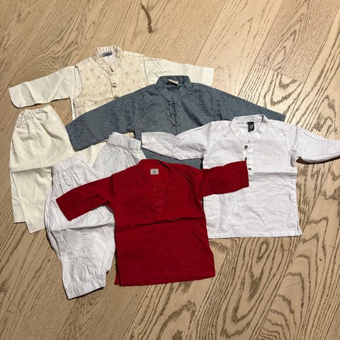 Indisk / pakistansk lengha str 10-12 år. Brukt kun et par timer på fest. Følger ikke med det blå sjalet, men et gull/besj sjal i stedet.