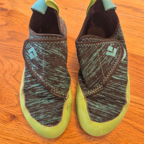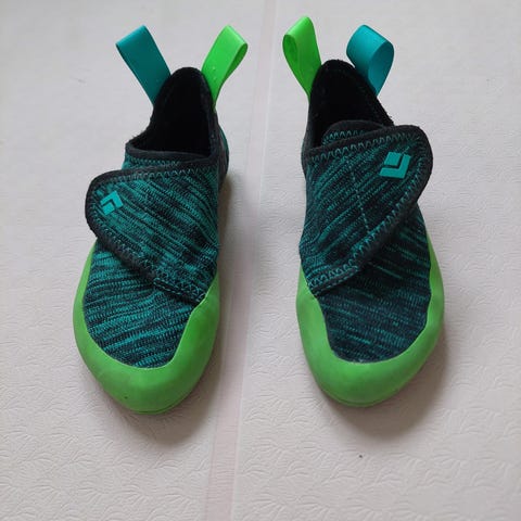 Disse klatreskoene rakk dessverre bare å bli brukt en gang før de ble for små.
