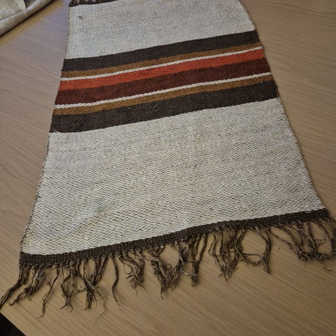 Nydelig fine løpere i same mønster,fin fløyel m ensfarget stoff på baksiden, 124 cm uten dusk.90 cm lang uten dusk,, ca 32 cm bredselges samlet,kan sende, kjøper bet porto,se mine anonser,løperene har ikke vært i bruk,