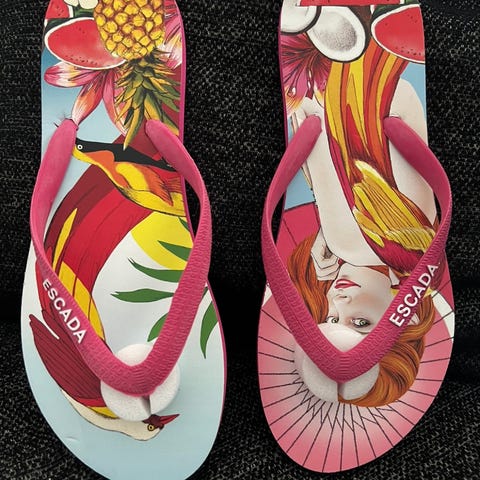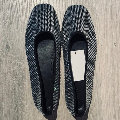 Ballerinasko i «flettet strå», Fra HM. Ubrukt, uten lappen men med tråden som den satt på.