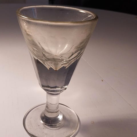 Et lite svært gammelt drammeglass. Samlerobjekt. Fra 1800-tallet selges til høystbydende. Etter min tippoldefar.