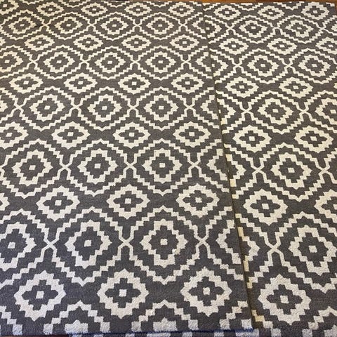Stort og deilig teppe med fluff-følelse i fargen hvit og beige.