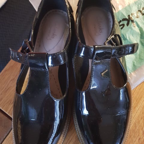 Lakksko fra Clarks i størrelse 37 Skoene har snøring og klassisk design.