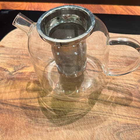 Selger en flott tekanne i glass på 1.5L som kan brukes til å brygge enten løs te med filteret som er inkludert. Eller teposer med diverse te-smaker. Selger også foresten hjemmelagde Urte teposer i smakene Fennikel, Mynte, Eucalyptus, Lakris, Rosmarin, Melisse te og Salvie.