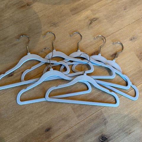 11 stk. Blå og grønne Fløyel Sklisikre Kleshengere for barn, pent brukte