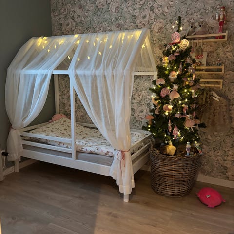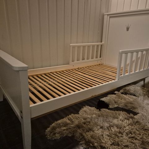 Jotex Campo barneseng 90x200 cm i grågrønn selges. Kjøpt ny i 2024. Har borret to små hull for feste til babycall ellers ganske strøken.