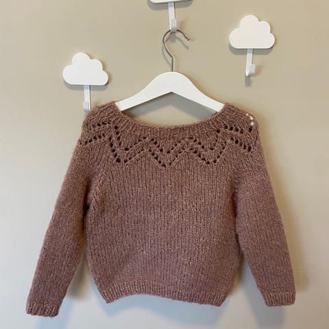 Strikket i Sandnes garn, børstet alpakka 96 % børstet alpakka/ 4 % nylon.