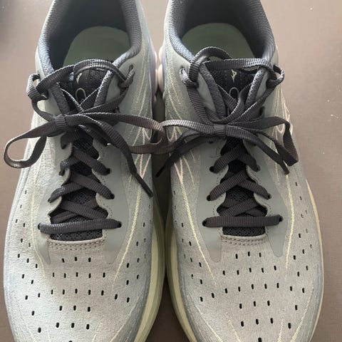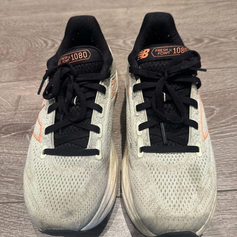 On Løping Sko i størrelse 40. Skoene er designet for løping og har en kombinasjon av farger med røde og beige nyanser. Materialet og konstruksjonen er tilpasset for løpeaktivitet.