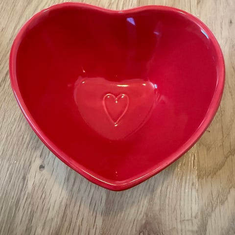 Kruset har ikke vært brukt og ligger i original gaveeske med matchende hjertemønster.