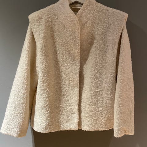 Beige jakke med gulltråd