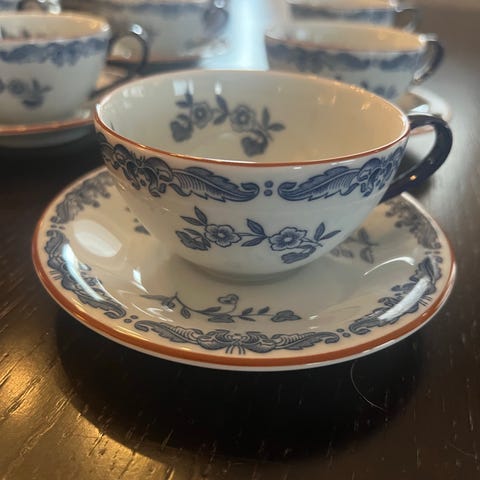 Rörstrand Ostindia 4 tekoppen, 5 tefat selges samlet.