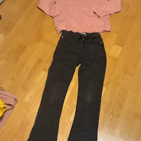 Dressjakke (brukt 3 ganger), og dressbukse i mørkeblå (mørkere enn bildene) fra H&M. Størrelse 128. Det er ikke et sett og ulikt stoff, men brukt sammen og passer fint.