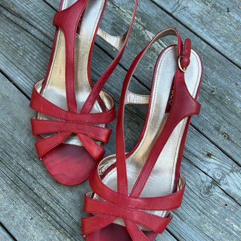 Stilige høyhælte pensko i skinn til julebord el nyttårsfest (el til sommeren)
