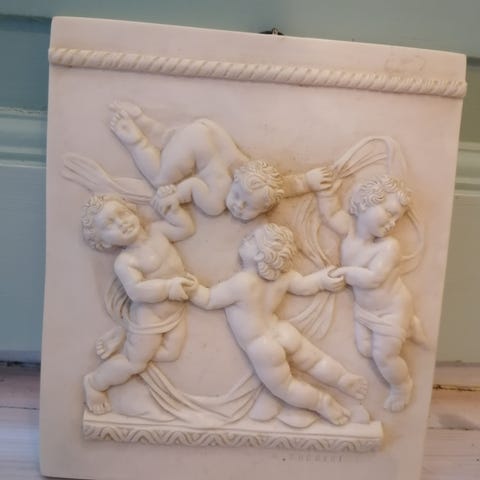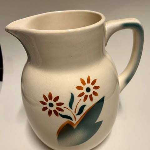 Vakkert og klassisk vaskesett fra Egersund Fayancefabrik, trolig fra slutten av 1800-tallet eller tidlig 1900-tallet.