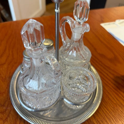 Dekor i blått med orientalsk landskapsmotiv, typisk for perioden. Alle deler er i god stand med normal bruksslitasje for alderen (ingen store skader, mindre krakelering kan forekomme). Perfekt for samlere eller som nostalgisk interiørdetalj.
