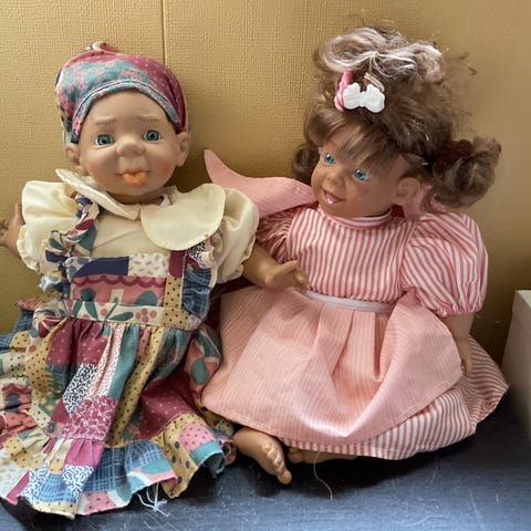 Retro dukker dukke leke leker gamle dukker porselensdukke porselensdokke porselensansikt dukkeklær samleobjekt samlerverdi antikk gammeldags nostalgi samling