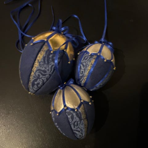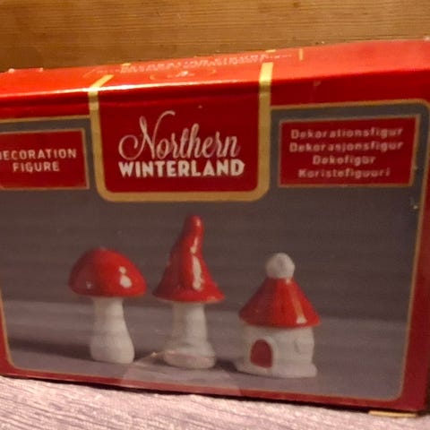 Fin gammel toppstjerne i hard plast med glimmer, høyde ca 22,5 cm. Lysholdere i tinn, sink eller annen form for metall med motiver av stjerner og kuler, samt 3 eldre guilander med tinselglimmer selges samlet. Delene har aldersrelaterte bruksspor enkekte steder, se bilder for stand.
