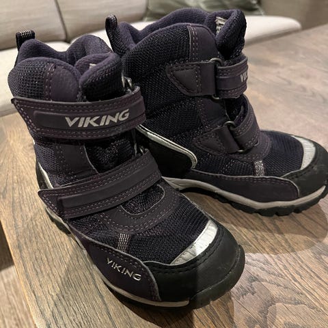 Viking barnesko i størrelse 29 for unisex. Skoene har borrelås for enkel justering og er designet for barn. Passer til utendørs bruk med solid såle for godt grep. Veldig pent brukt 1 sesong