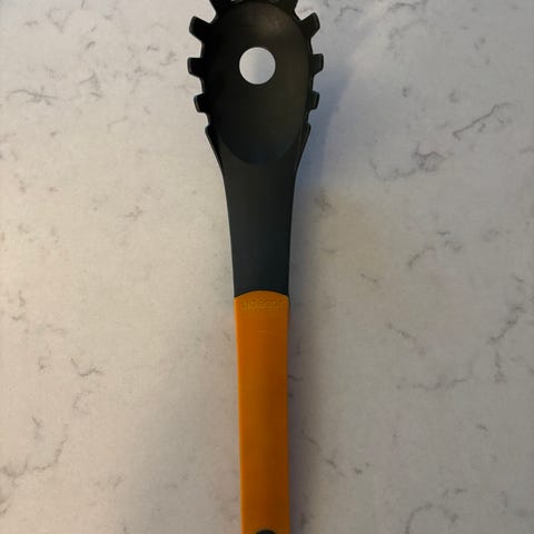 Denne store og praktiske pastaøsen er ikke bare ideell for servering av pasta, men den fungerer også som et lite dørslag. Med en genial funksjon på undersiden tillater øsen at den kan hvile over gryten og renne av seg, noe som gjør den ekstra praktisk og enkel å bruke. Den er perfekt egnet for pasta, grønnsaker og til og med i frityrgryten.
