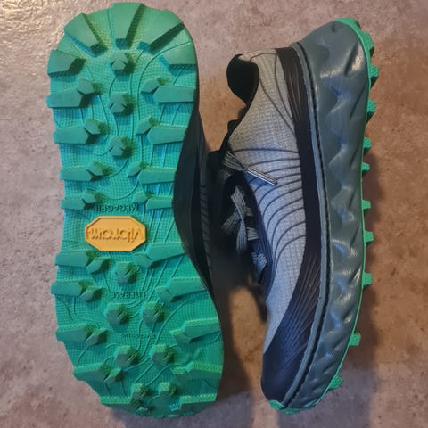 «Salomon Energy Surge løpesko i størrelse 40. Skoene har forsterket tåhette og ekstra beskyttelse på innsiden, integrert gamasje for å holde smuss ute, og er laget med Energy Foam som gir lett, responsivt skum i mellomsålen. Overdelen er laget av Matryx-materiale, og yttersålen har Contagrip® for bedre grep og stabilitet. Egnet for løping.»