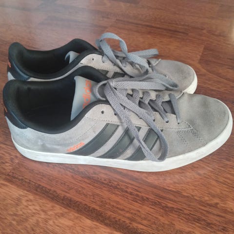 Pent og lite brukte sneakers i brunt skinn. Str. 38 2/3. Hvite og lyseblå detaljer.