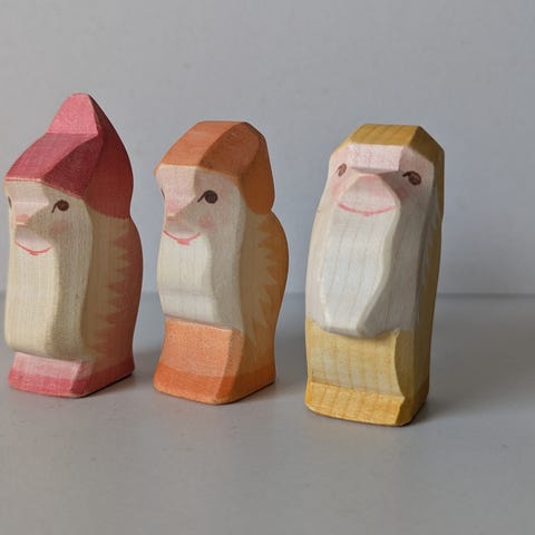 Dukkene har forskjellige hatter i stoff, en oransje og en hvit.