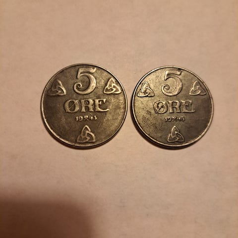 Så på siden med året ser man bunnen av kronen mellom bokstavene øre.