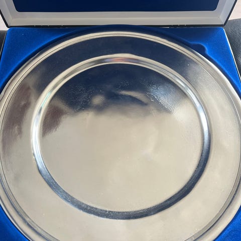 Det er litt bruksmerker, som forventet da det er vintage fra rundt 50-60-tallet. Merket er kjent for aluminiumsdekor, og jeg går ut ifra at dette også er det.