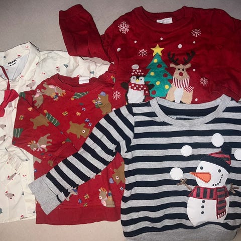 Blå julegenser fra H&M har anmerkninger, se bilde.