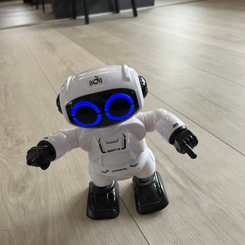 Silverlits lekerobot Makcrobot er en stor robot med mange spesielle elementer! I tillegg til hjulene, har Macrobot bevegelige deler på alle sider, og øynene lyser opp i 3 forskjellige farger. Med den inkluderte programmvaren kan du be ham transportere små ting. han kan huske en rute han har dratt og gjenta denne ruten uten problemer. Macrobot har en opptaksfunksjon som lar deg ta opp opp til 3 tekster, som han kan lese opp i robotstemmen sin. Fjernkontrollen lar deg gjøre all slags forhåndsprogramerte handlinger og når du kobler til flere MacroBots kan de kommunisere med hverandre. Dette produktet anbefales til barn fra fyllte 5+ år