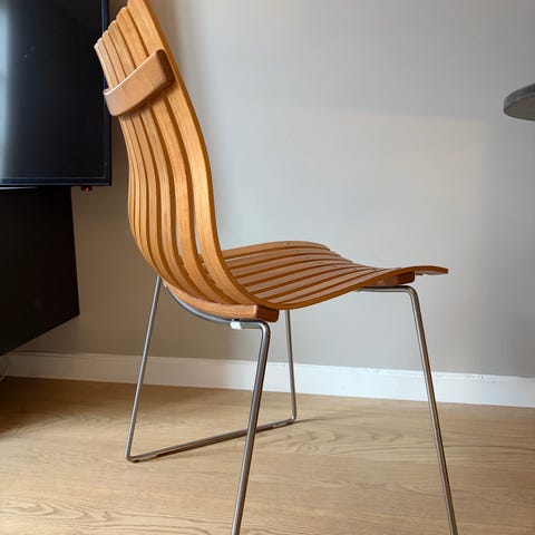 Fjordfiesta Scandia Jr i grønn med sorte ben. Stolen er ikke brukt og fremstår som ny. En lekker grønn farge