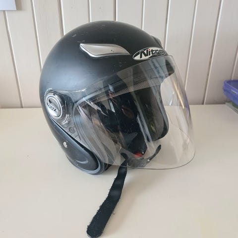 Nitro motorsykkelhjelm i svart farge. Hjelmen har en stor, gjennomsiktig visir for god sikt. Innvendig polstring for komfort ved bruk. Størrelse XL.