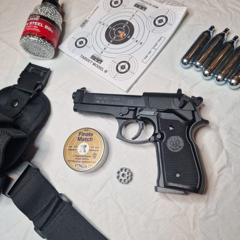 Selger en Beretta Elite II CO₂ luftpistol i svært pen stand, praktisk talt som ny. Pistolen er en lisensiert Beretta-modell produsert for Umarex (Tyskland) og skyter 4,5 mm BB (stål).