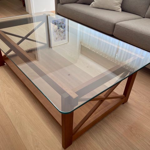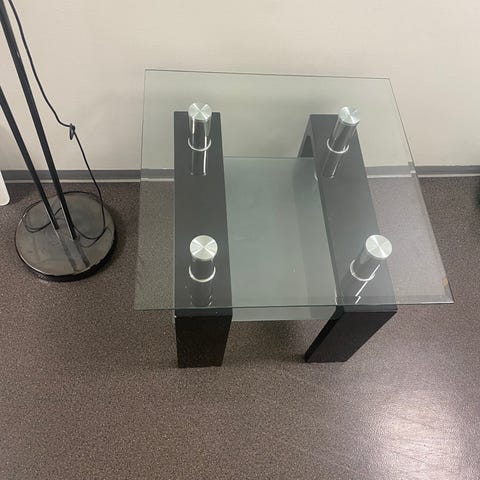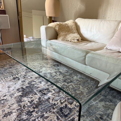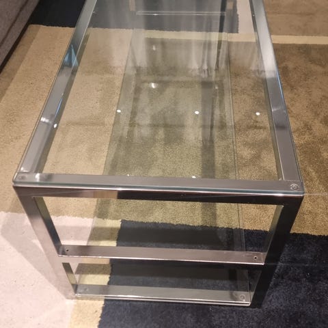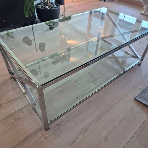 Flott glassbord selges. Ingen merker eller riper. Ben og ramme i børstet stål.