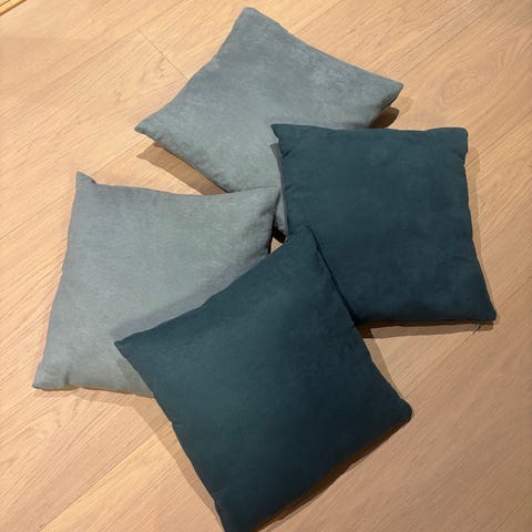 Vi avvikler daybeden vår og må nødt til å selge unna en del av putene mine🥹 disse 6 er alle fra Tine k og har innleggsputer av dun. Gode og myke og fine duse farger.