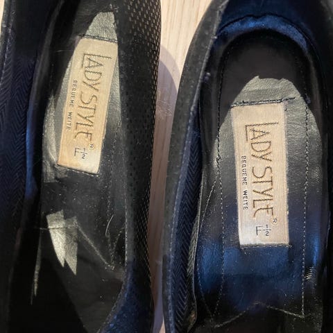 Pent og lite brukt sort pensko med platå hæl på ca 3-7 cm. Selges for kr 50.