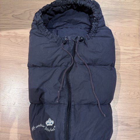 Odenwalder BabyNest vognpose i grå farge. Vognposen er designet for å holde barnet varmt og komfortabelt under turer i barnevogn. Den har polstring og justerbare snorer for tilpasning rundt hodet. Materialet er slitesterkt og egnet for utendørs bruk.