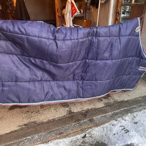 Heimer Small dekken hals i blå farge. Dekkenet er designet for å gi beskyttelse og komfort til hesten. Det har festeanordninger for sikker tilpasning. Materialet og størrelsen Small passer til mindre hester eller ponnier.