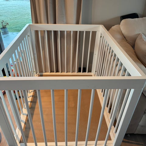 Moonboon hengevugge med motor, fjær og karmbeslag selges. Vi kjøpte den brukt, og har brukt den bare et par mnd selv da lillebror heller ville sove i vogn plutselig😴🤌🏼Et lite merke/misfarging på trepinnen, ellers ingen synlige flekker. Det har alltid vært beskyttelseslaken i når den har vært i bruk.