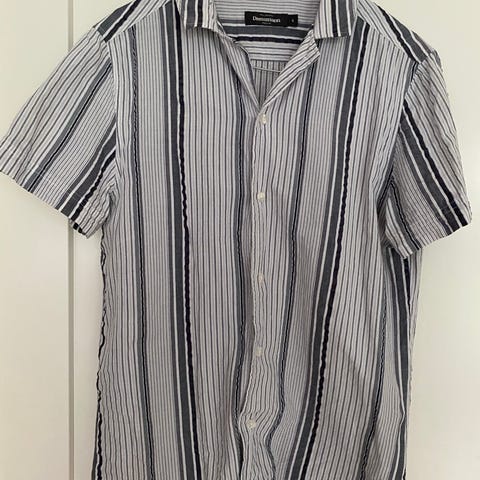 Er egentlig slimfit men har brukt den som løs og ledig. Jeg er str M
