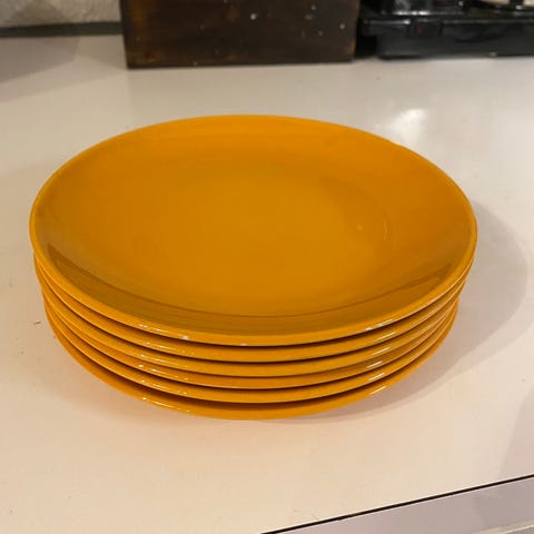 3 av tallerknene har skår. (Kun på undersiden av 2 av de).