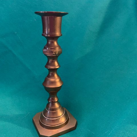 Diverse lysestaker i messing og en gulv-lysestake.