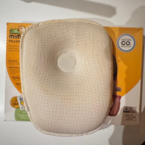 Ergonomisk pute som motvirker flatt hode (asymmetri skall). Denne modellen er beregnet på spedbarn mellom 0 og 10 måneder med en hoveddimensjon på 36-46 cm.