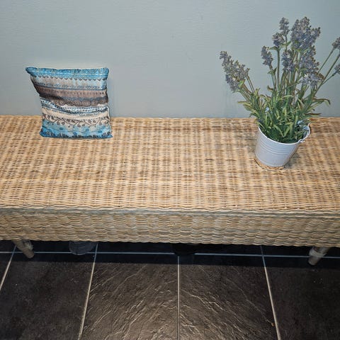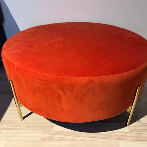 Pent brukt marineblå benk i fløyelsstoff selges.