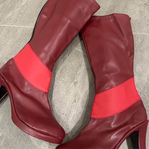 Lite brukte skinnstøvletter i kraftig, sort kvalitetsskinn str 41. Kilehælen er i plastmateriale, så tåler godt litt ruskete vær. Hatt de i noen år, men brukt de svært lite, mener de kostet rundt 2.000,- nye.