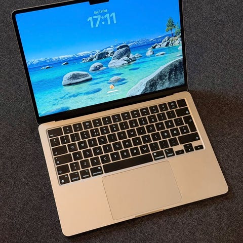 Selger en nesten ny MacBook Air 13-tommer med M4-chip, 16 GB RAM og 512 GB SSD i fargen sølv.